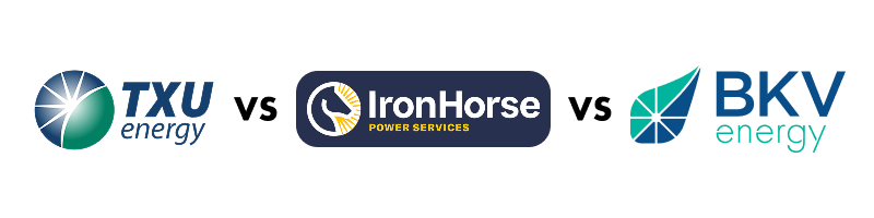 Compare TXU Energy, Ironhorse Power, and BKV Energy Electricity Rates